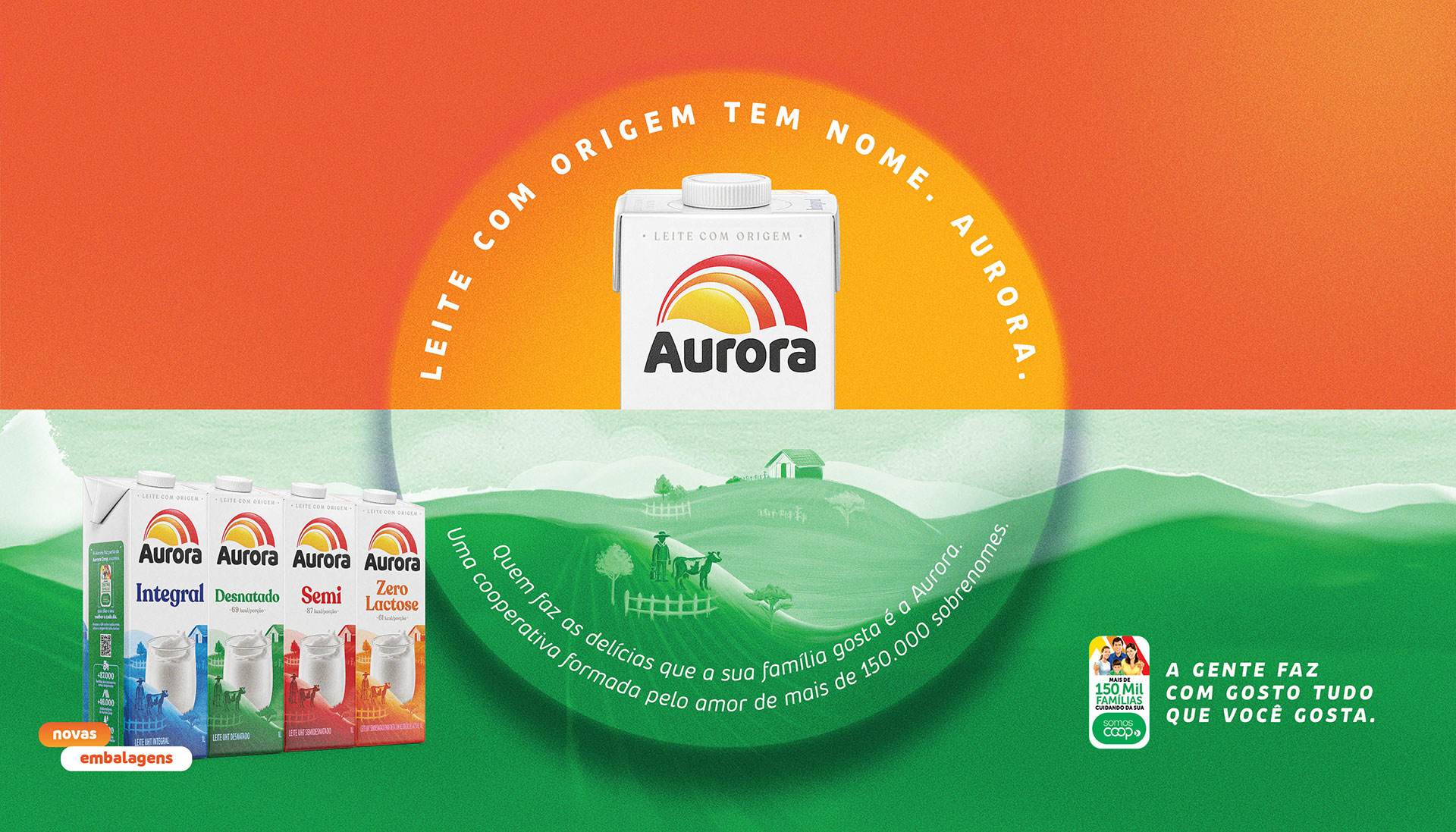 A qualidade do seu leite é resultado de todo cuidado e a dedicação das famílias produtoras da Aurora. Somos mais de 150 mil famílias entre colaboradores e produtores rurais, pessoas como você e famílias como a sua que lutam e dão o seu melhor a cada novo dia.