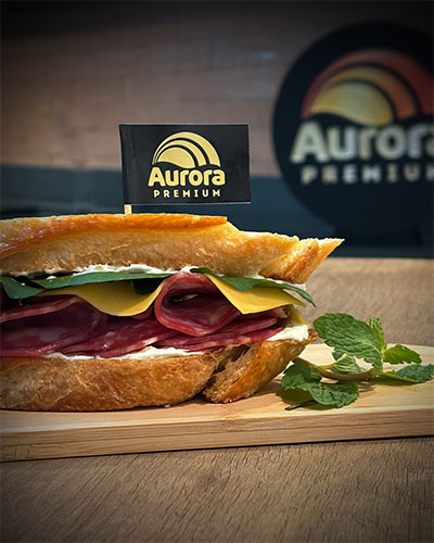 3. Adicionar folhas de rúcula e cobrir com a outra fatia de pão italiano.